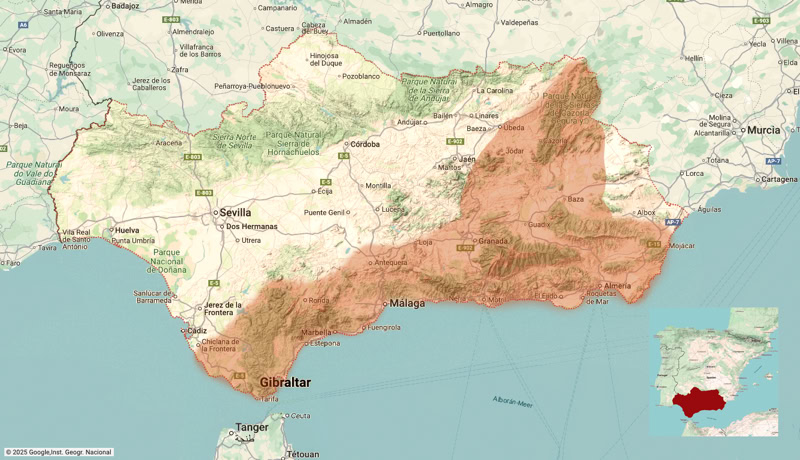 Andalusiens Ost-West Ausdehnung. Wir bewegen